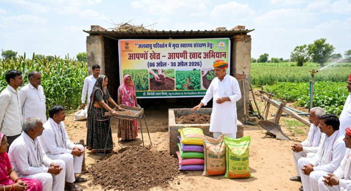 राजस्थान के कृषि एवं उद्यानिकी मंत्री डॉ. किरोड़ी लाल मीणा ने प्रदेश के किसानों के हित में एक महत्वपूर्ण घोषणा की है। उन्होंने कहा कि जलवायु परिवर्तन के इस चुनौतीपूर्ण दौर में मिट्टी की सेहत (मृदा स्वास्थ्य) को बचाए रखना न केवल पर्यावरण के लिए, बल्कि कृषि की स्थिरता और बेहतर उत्पादकता के लिए भी अनिवार्य हो गया है। इसी दूरगामी लक्ष्य को प्राप्त करने के लिए राज्य सरकार द्वारा आगामी 06 अप्रैल से 30 अप्रैल 2026 तक प्रदेशव्यापी “आपणों खेत–आपणी खाद” अभियान चलाया जाएगा।