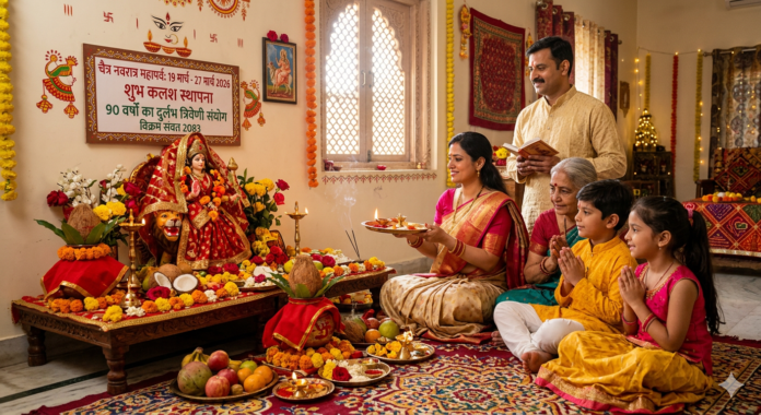 शक्ति की आराधना का महापर्व चैत्र नवरात्र वर्ष 2026 में 19 मार्च से शुरू होकर 27 मार्च तक मनाया जाएगा। इस वर्ष का नवरात्र ज्योतिषीय दृष्टि से अत्यंत महत्वपूर्ण है क्योंकि यह लगभग 89-90 वर्षों बाद बन रहे एक दुर्लभ और अद्भुत संयोग के साथ आ रहा है।  ज्योतिष गणनाओं के अनुसार, इस बार नवरात्र के पहले ही दिन एक विशेष ‘त्रिवेणी संयोग’ बन रहा है। 19 मार्च को चैत्र कृष्ण पक्ष की अमावस्या का समापन, शुक्ल पक्ष की प्रतिपदा तिथि का प्रारंभ और इसी दिन गौतम जयंती का होना इस पर्व की महत्ता को कई गुना बढ़ा रहा है। इस तरह का ग्रहों का मिलन पिछले नौ दशकों में नहीं देखा गया है, जो आध्यात्मिक साधकों के लिए विशेष फलदायी माना जा रहा है।