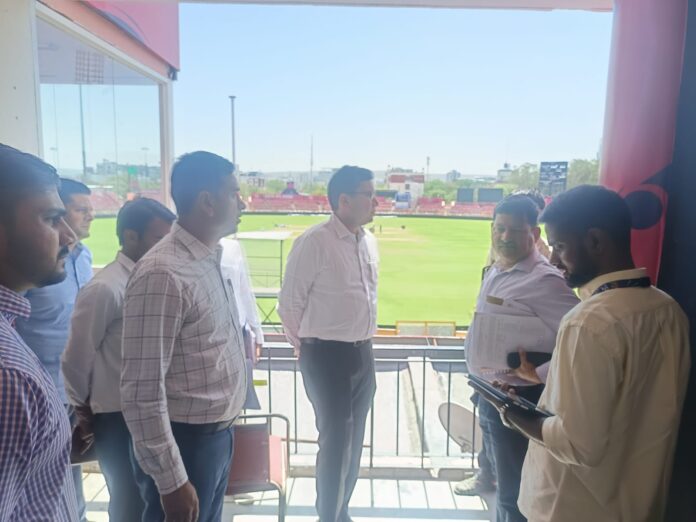 राजस्थान रॉयल्स के घरेलू मैदान सवाई मानसिंह (एसएमएस) स्टेडियम में आईपीएल 2026 के आगामी मैचों को सुरक्षित और सुव्यवस्थित बनाने के लिए प्रशासन ने कमर कस ली है। राजस्थान राज्य मानवाधिकार आयोग के निर्देशों और आपदा प्रबंधन अधिनियम 2005 के प्रावधानों की पालना सुनिश्चित करने के लिए जिला कलेक्टर संदेश नायक ने बुधवार को स्टेडियम का विस्तृत निरीक्षण किया और संबंधित अधिकारियों के साथ अहम बैठक की।