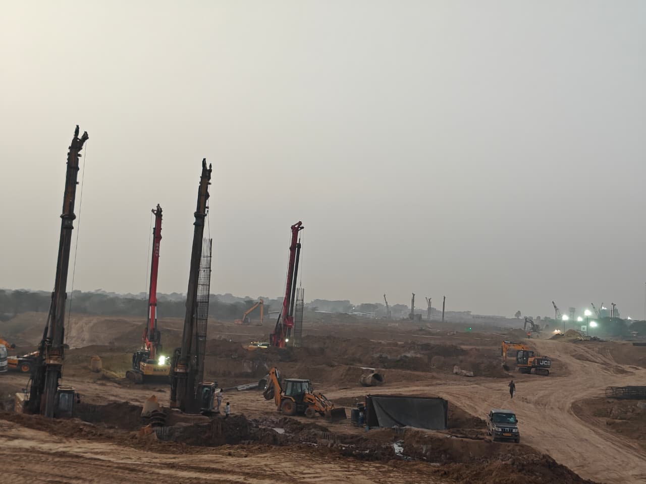 वहीं निर्माण स्थल पर कैंप और बैचिंग प्लांट का लगभग 90 प्रतिशत कार्य पूर्ण कर लिया गया है। एक्वाडक्ट हेतु प्रस्तावित 15 टेस्ट पाइल में से 8 टेस्ट पाइल का कार्य पूर्ण हो चुका है। कुल 5060 वर्किंग पाइल प्रस्तावित हैं, जिनमें से लगभग 860 पाइल का निर्माण पूर्ण किया जा चुका है। प्रतिदिन 15-20 पाइल का कार्य 12 रिग मशीनों की सहायता से किया जा रहा है। औसतन 500 क्यूबिक मीटर कंक्रीट कार्य प्रतिदिन किया जा रहा है। साइट पर लगातार शिफ्टों में कार्य जारी है।
